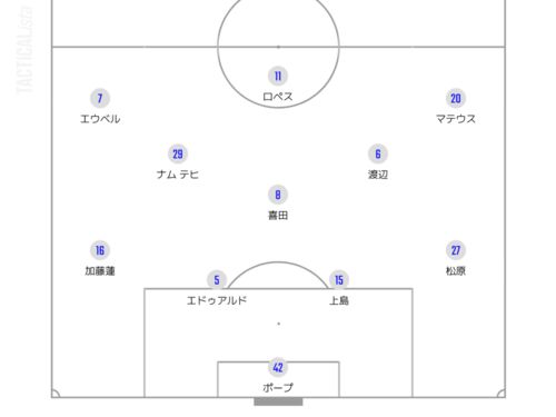 www.jleague.jp スタメン 流れ マリノスは喜田をアンカーにした4-1-2-3。ロペスが最前線でチェイスし、そのすぐ後ろに4の列を作った4-1-4-1気味のプレス。 1分、中盤の浮いたスペースでとったバンコクが右サイドを縦に運んでクロスまで。1stチャンスはバンコ…