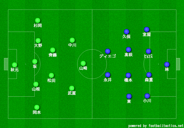そこで狙うべくは東と久保が中央に入って受けること、もしくはディエゴが少し引いて受けること。プレスを回避すること前提になりますが、何でもできるこの3選手が受けられればかなりの脅威となるはずです。